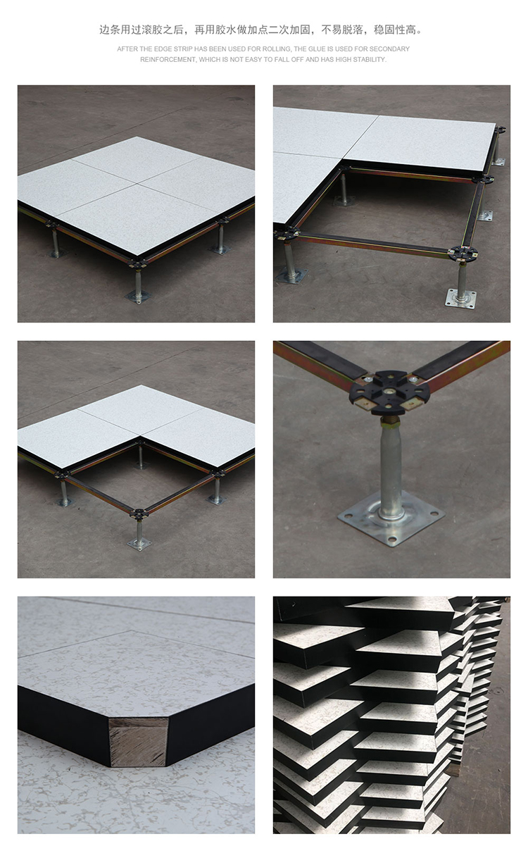 硫酸鈣防靜電地板采用硫酸鈣為基材,地板上面用防火板HPL/PVC/陶瓷地板等裝飾面層,下面用鍍鋅板或壓花鋁合金粘合,四周用PVC導(dǎo)靜電封邊,地板不易受潮,不易變形,耐燃燒時(shí)間更長(zhǎng),使用壽命長(zhǎng),安裝好的地板下面形成通路,方便下面地板走線,線路檢修。地板無需除油磷化噴塑,平整度好、邊不反翹,環(huán)保、強(qiáng)度大,密封性及穩(wěn)定性好。
