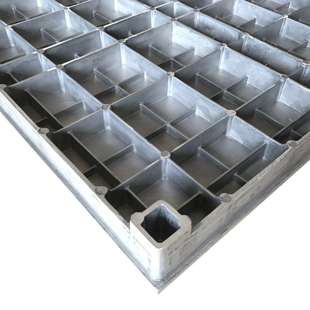鋁合金地板采用高壓壓鑄工藝,鋁錠熔化后,經(jīng)高壓壓鑄機(jī)一次性真空壓鑄成形,融合了鋁合金耐腐蝕的特性,地板表面可根據(jù)需要進(jìn)行環(huán)氧樹(shù)脂噴粉或鎳鉻電鍍,從而表面達(dá)到柔光、防腐、耐磨效果。