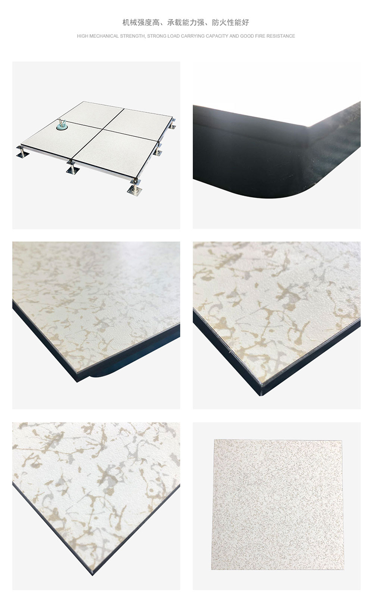 全鋼防靜電地板為全鋼組件,分有邊、無邊、微邊(三種邊處理方式)。底面采用SPCC深沖冷軋板拉伸成型鋼板厚度(0.4~1.5mm),球窩狀結(jié)構(gòu),增加地板的機(jī)械荷載強(qiáng)度。面板采用硬質(zhì)SPCC鋼板(0.5~2.0mm),上下經(jīng)過點(diǎn)焊焊接成型,切邊沖孔后,經(jīng)防銹處理,環(huán)氧樹脂粉末靜電噴涂后,中間填充發(fā)泡水泥(可以根據(jù)客戶需求發(fā)泡不同重量),再經(jīng)過日曬養(yǎng)護(hù)后形成穩(wěn)定的承載結(jié)構(gòu)。地板上表層粘貼防火板(HPL)/復(fù)合PVC/ 通體PVC/陶瓷地磚等不同材質(zhì)的裝飾表層,達(dá)到產(chǎn)品花色的多樣性、可以根據(jù)客戶需求個性化定制產(chǎn)品。搭配聯(lián)網(wǎng)支架、支架、螺釘組裝后,定位聯(lián)接更加準(zhǔn)確、精度可靠。
