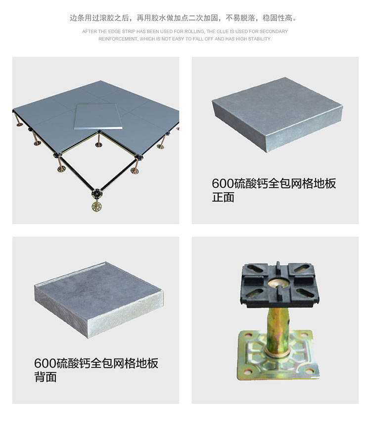 硫酸鈣網(wǎng)絡(luò)地板采用硫酸鈣為基材,板芯六面均用鍍鋅板包合而成,地板不易受潮,不易變形,耐燃燒時(shí)間更長(zhǎng),使用壽命長(zhǎng),安裝好的地板下面形成通路,方便下面地板走線,線路檢修。地板無需除油磷化噴塑,平整度好、邊不反翹,環(huán)保、強(qiáng)度大,密封性及穩(wěn)定性好。